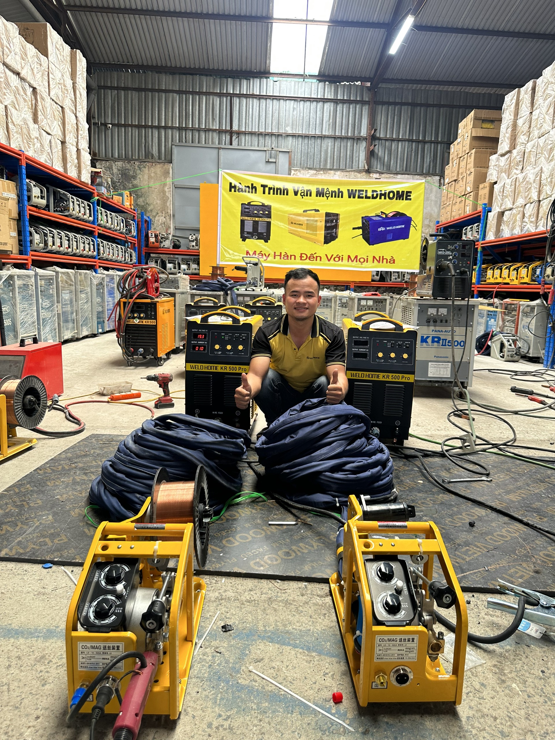 Hàn thân tàu: Máy hàn MIG Weldhome 500A được sử dụng để hàn các tấm thép lớn với độ chính xác cao và đường hàn mạnh mẽ, đảm bảo tính an toàn và bền vững của thân tàu.
